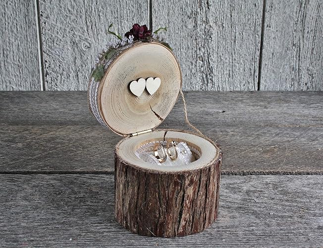 Amazon Com Burgundy Ring Bearer Box Rustic Ring Wood Box