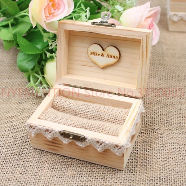 Custom Name Wedding Ring Box Engagement Personalized Wooden Ring Bearer Storage Box Romantic Wedding Gift Holder Ornaments For Christmas Outdoor
