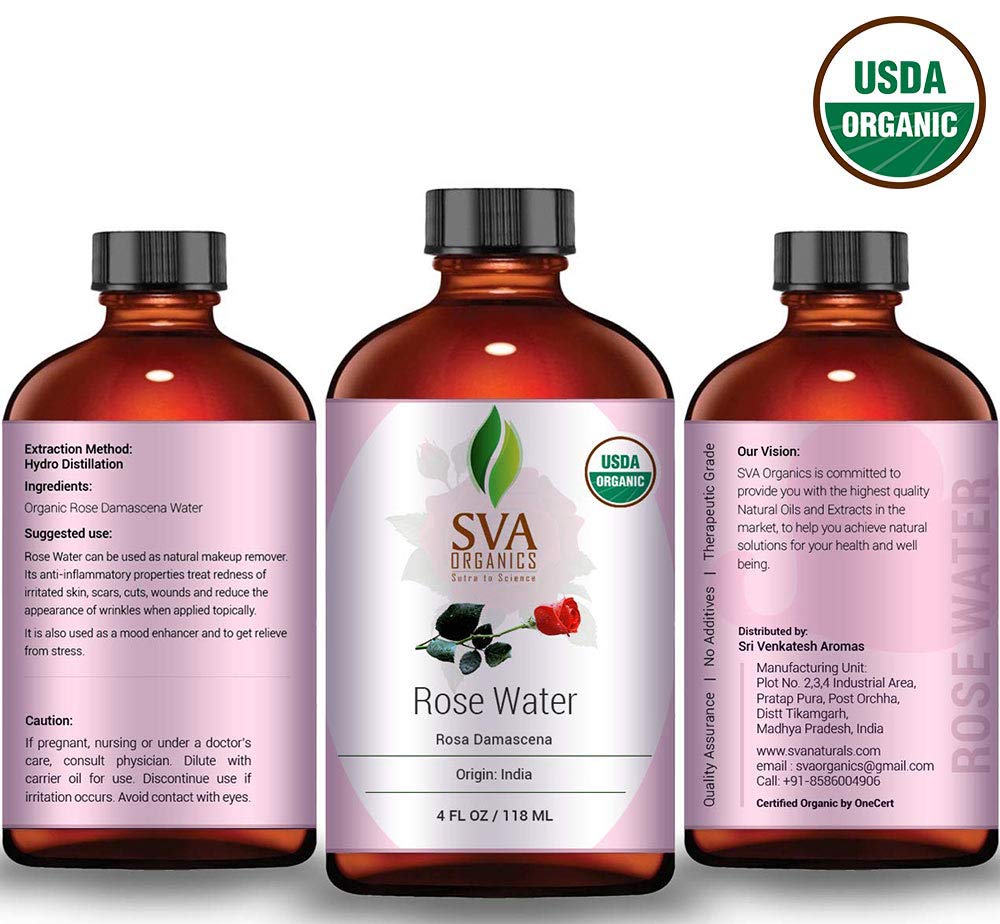 Usda Certified Organic Rose Water Facial Toner 118 Ml 4 Oz 100 Pure Natural Unrefined By Sva Organics Aromatherapy Reduce Dark Circles Pores